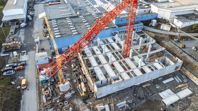 Es ist eines der größten Bauvorhaben in der Firmengeschichte des Bauunternehmens Blume: Für die Firma Wicke realisiert das Familienunternehmen ein Hochregallager mit viergeschossigem Logistik-, Sozial-, und Bürogebäude. Geschäftsführer Manuel Blume: „Wir konnten die Umsetzung dieses Bauvorhabens noch weiter optimieren und setzen Filigran-Fertigteile in Verbindung mit Vollfertigteil-Trogplatten ein. Insgesamt verkürzt sich die Bauzeit der Decken dadurch fast um die Hälfte und der Auftraggeber spart obendrein noch circa zehn Prozent der Kosten gegenüber der ursprünglich geplanten Art der Ausführung. Nur durch diese Optimierung kann der ambitionierte Zeitplan eingehalten und ein rechtzeitiger Baubeginn für die bereits terminierten Folgegewerke gewährleistet werden.“ Das Hochregallager umfasst eine Fläche von rund 3.500 Quadratmetern. Es grenzt an das etwa 1.650 Quadratmeter große Gebäude 6, das dann die direkte Verbindung zwischen der schon bestehenden Halle und dem neuen Hochregallager bildet. Manuel Blume führt das 1951 gegründete Unternehmen bereits in dritter Generation. Mit Projekten wie diesem hat sich Blume einen guten Namen in der Region gemacht. Im Industrie- und Gewerbebau bietet die Baufirma neben Neubau auch Sanierung und Abbruch an. Den besonders hohen Qualitätsanspruch an die eigene Leistung erfüllt Blume unter anderem auch deswegen, weil er seine Mitarbeiter durch Schulungen und Weiterbildungen stets auf dem neuesten Stand der Technik hält.