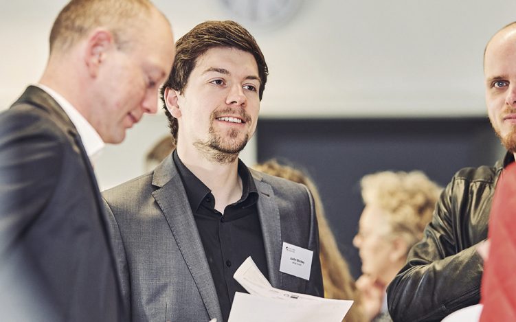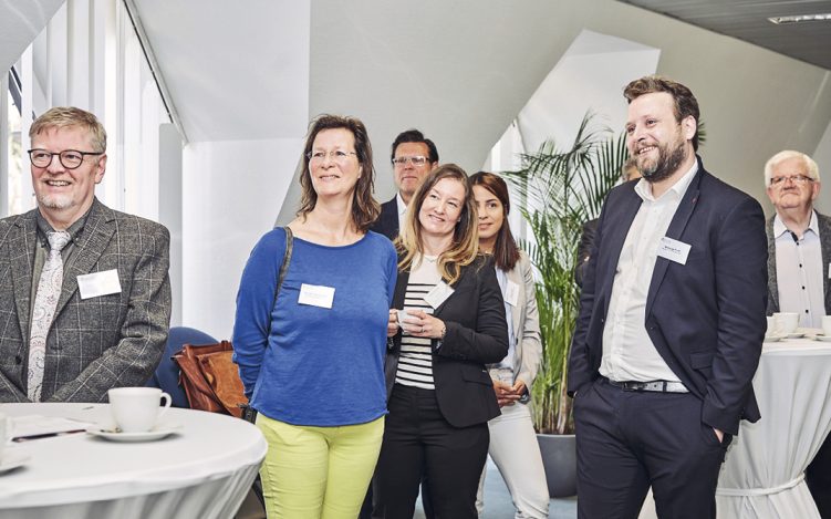 „Das rege Interesse hält an, seit über acht Jahren. Das zeigen uns die wiederkehrenden Gäste und der Besuch immer neuer Teilnehmer. Der Austausch zweier Geschäftskulturen motiviert zur Anreise selbst zur frühen Stunde“, erläutert Guido Schmidt von der Wirtschaftsförderung Brüggen das Erfolgsgeheimnis. So auch dieses Mal beim Treffen in Brüggen am 10. April 2019. Direkt nach dem Eintreffen versammeln sich erste deutsche und niederländische Gäste an den Stehtischen, tauschen Visitenkarten aus und kommen bei der ersten Tasse Kaffee ins Gespräch. Eine Teilnehmerliste, die vorab online für die gezielte Vorbereitung bereitsteht, schafft Transparenz und die Möglichkeit, über das morgendliche Treffen hinaus ins Gespräch zu kommen. Unterbrochen wird das Netzwerken der Teilnehmer nur kurz durch Jörg Raspe, IHK Mittlerer Niederrhein, und Guido Schmidt, Wirtschaftsförderung der Burggemeinde Brüggen, die die knapp 40 Unternehmer begrüßen. Es folgt eine kurze Vorstellung neuer Gäste, womit sich erste Anknüpfungspunkte für die weiteren Gespräche ergeben.