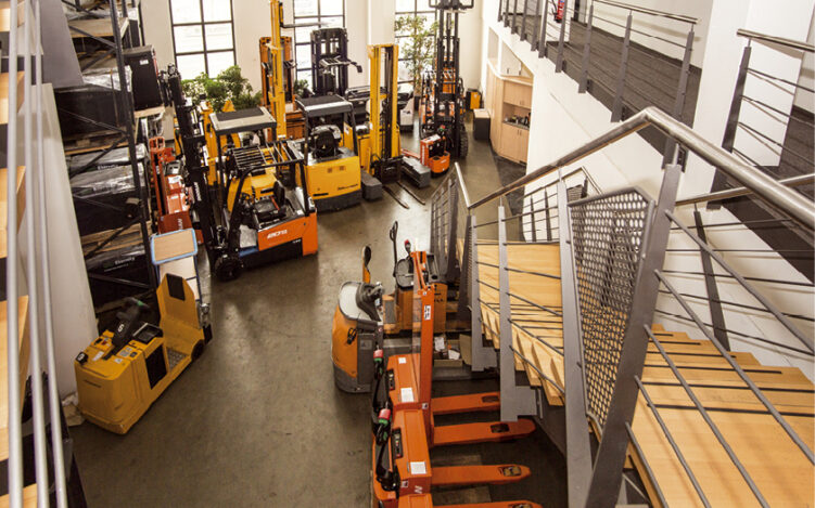 Zusätzlich zu Beratung und Verkauf der Stapler bietet Lenzing „die Vermietung von Gabelstaplern, Lagertechnik und Zubehör an“, erklärt Geschäftsführer Kaninski. Über 400 Geräte, von Deichselgeräten über Scherenbühnen bis hin zu Reinigungsmaschinen, stehen den Kunden zur Verfügung. Der Service umfasst Fahrerschulung und Einweisung vor Ort sowie Wartung und Reparatur in der hauseigenen Werkstatt. Durch den eigenen Fuhrpark gelangen die Geräte zuverlässig und pünktlich ans Ziel.