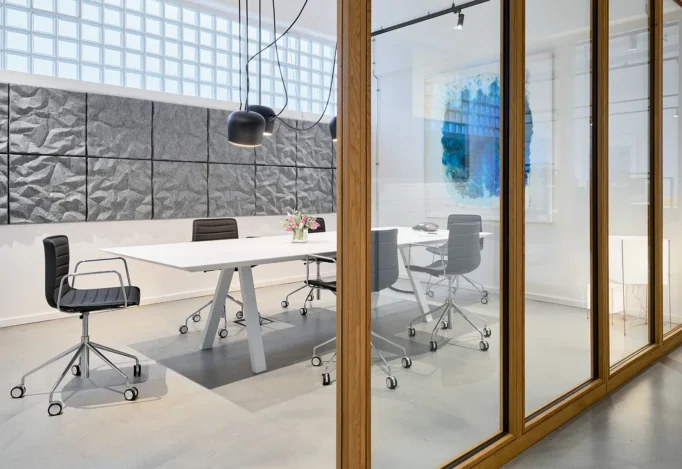 Gemeinsam mit Innenarchitektin Nadine Vogt hat fundus7 für die Düsseldorfer Wirtschaftskanzlei VCvF.legal in einer ehemaligen Stahlfabrik ein modernes Office mit Loft-Charakter eingerichtet