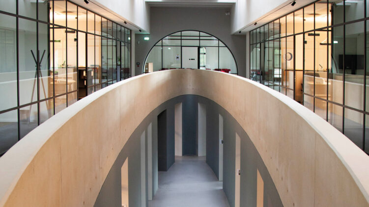 Die ehemalige St. Nikolaus Kirche in Bochum-Wattenscheid ist heute ein modernes Bürogebäude. Wo früher Gläubige saßen, arbeitet nun die Wattenscheider Wohnungsbaugenossenschaft. Besonders beeindruckend: Die Raumtrennsysteme fügen sich mit eleganten Rundbögen und Sprossen harmonisch in die historische Architektur ein. Die Stadtwerke Krefeld präsentieren sich mit einem lichtdurchfluteten Empfangsfoyer über zwei Etagen, bei dem transparente Absturzsicherungen im Obergeschoss und funktionale Besprechungsräume im Erdgeschoss optisch eine Einheit bilden. Und in einer großen Essener Konzernzentrale sorgen intelligente Technikpaneele neben den Türen für moderne Funktionalität – von Zutrittskontrollen bis zu Raumbuchungssystemen.