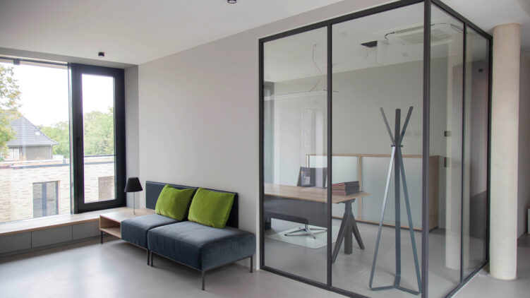Diese Vielseitigkeit zeigte sich besonders beim Projekt der Stadtwerke Krefeld. Hier mussten im oberen Bereich transparente Absturzsicherungen nach strengen Sicherheitsvorschriften installiert werden, während im Erdgeschoss Besprechungsräume mit Fokus auf Akustik und Raumklima entstanden. „Zwei völlig unterschiedliche Anforderungen, aber optisch eine harmonische Einheit aus dem gleichen System“, beschreibt der Geschäftsführer.